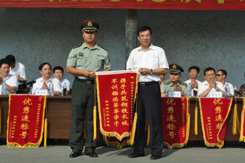 党委书记王海棠向承训部队赠送锦旗