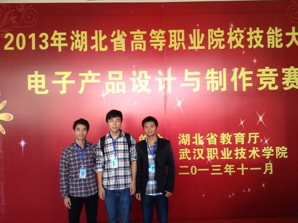 湖北省高等职业院校技能大赛于11月9-10日在武汉职业技术学院举行,由来自照明与电气工程系电子创新实验室殷晨东、黄大超、张璇3名同学组成的荆州理工职业学院代表队参加了"电子产品设计与制作"赛项,并在竞赛中获得省三等奖的好成绩。