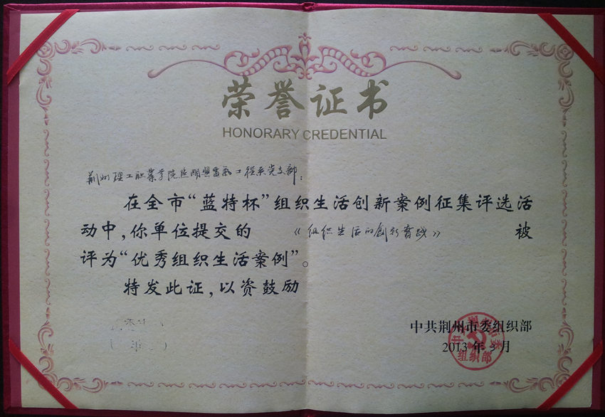 活动开展以来,学院党委精心组织,各党支部高度重视,积极实践,勇于探索,踊跃投稿。经市委组织部"蓝特杯"组织生活创新案例征集评选活动组委会层层筛选、专家评审,学院照明与电气工程系党支部上报的《组织生活的创新实践》被评为"优秀组织生活案例"。