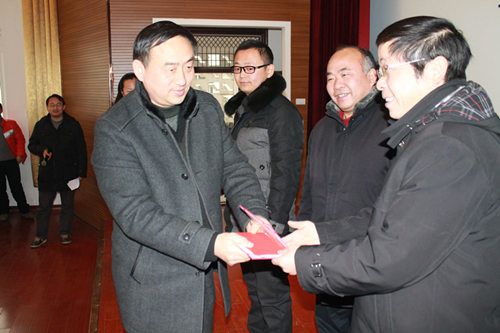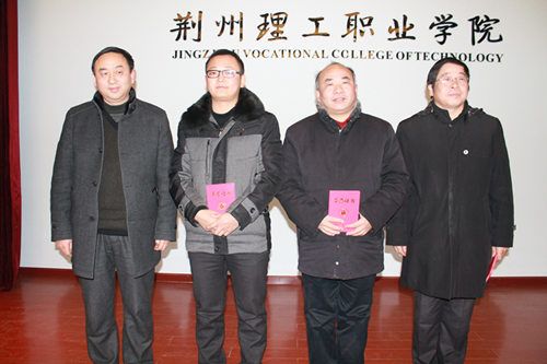 左起院长童应学 信息与智能工程系刘春春 基础课部梁树生 经济管理系何先华