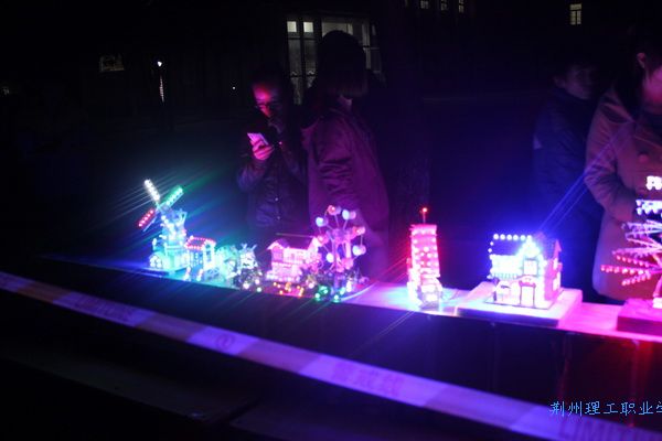 竞赛期间,学院领导田远芬副院长、系黄志清书记、系李云强主任、熊辉副主任亲临现场视察和指导。他们对竞赛的组织工作表示满意,对学生们在竞赛表现出的创意与动手能力表示赞赏。比赛在时间紧,强度高的情况下,同学们发挥不怕苦不怕累的精神,圆满完成了比赛。看着组装成型的作品被成功点亮,同学们都露出了满意的笑容。这些作品将在2013年12月3日晚在院校园主干道旁进行展出,到时将由全院同学们进行公投,选出本次竞赛中最受欢迎的作品。