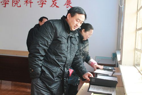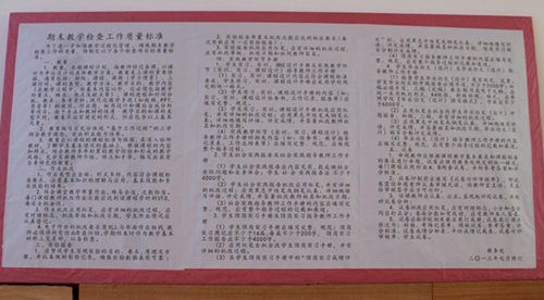 院长童应学和副院长田远芬兴致勃勃地观摩了展出的检查资料。童校长对教学检查效果非常满意,他指出,近几年来,学院在构建以全面质量管理为核心的教学质量校内监督和管理体系方面卓有成效,期末教学检查等各项措施有力地推动了教学改革,今后还要不断强化教学过程管理,完善质量监控和评价体系。