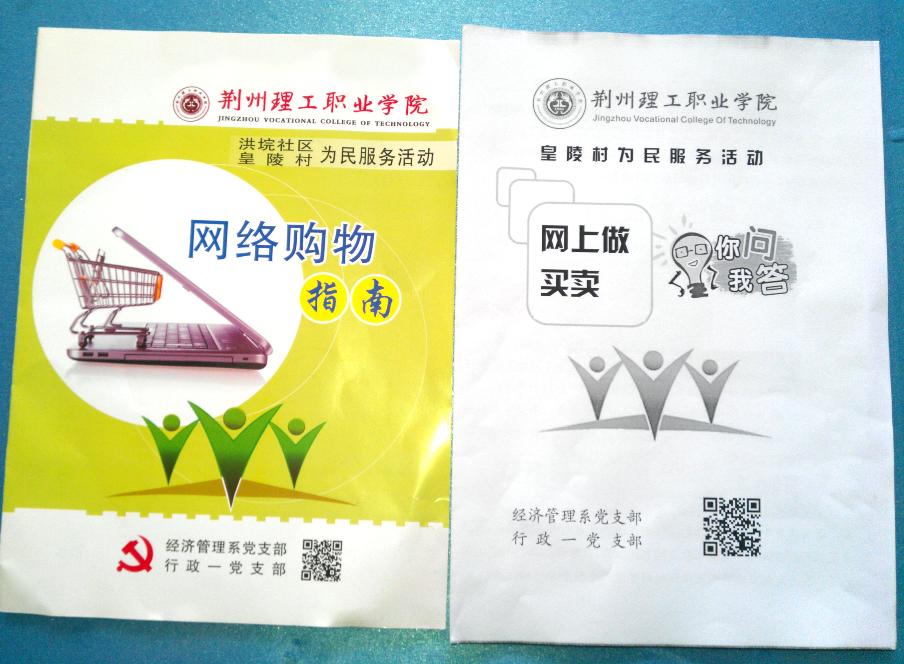 沙市区观音垱镇皇陵村——果蔬种植合作社和特种养殖合作社已经初具规模,在发展的过程中面临销售渠道单一、市场有限等问题。学院电子商务专业是中央财政支持的重点专业,具有较强的专业服务能力。针对皇陵村情况,电子商务的党员老师进行了 "网店知识"的宣传咨询,手把手教村民如何登录淘宝、天猫、拍拍等平台注册用户名、建立网站开店,销售产品等网店运营知识。活动当天,共发放《网上做买卖》、《网络购物指南》资料200份,受理咨询20余人次。