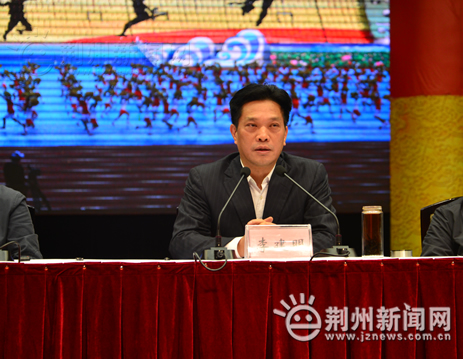 市委书记李新华主持会议并讲话,李新华指出,第十四届省运会已经落下帷幕,但省运会留下的物质财富和精神财富将继续对荆州的发展产生深远影响,并起到持久的推动作用。今天的会议既是总结表彰会,更是在新起点上的动员会、部署会。
