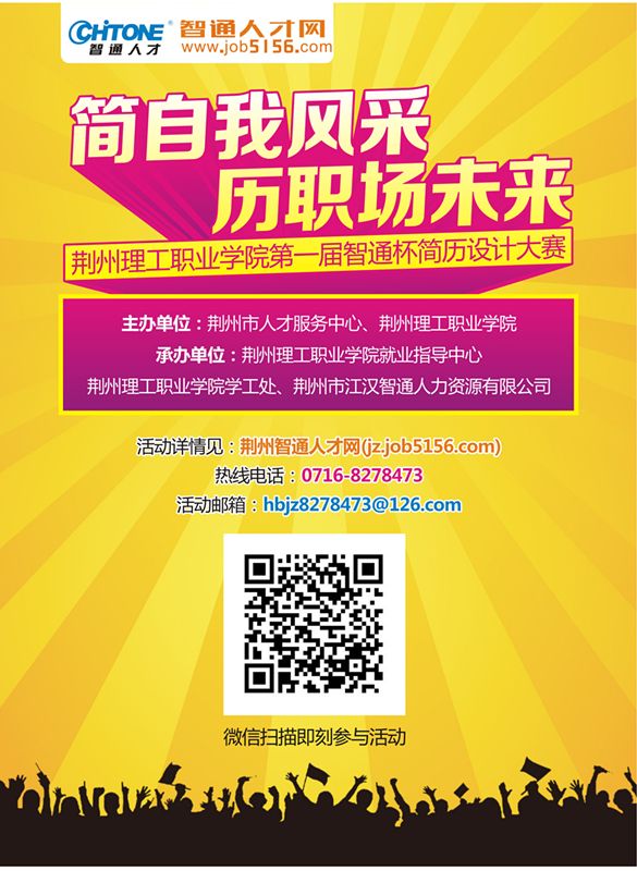 近日,由荆州市人才服务中心、荆州理工职业学院联合举办,学院就业指导中心、学生工作处、荆州市江汉智通人力资源有限公司承办的"智通杯"简历设计大赛拉开帷幕。