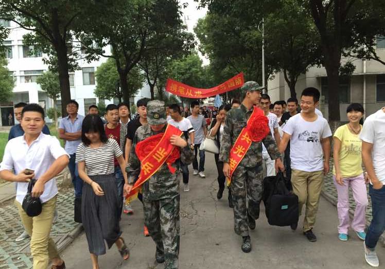 为响应国家政策,鼓励大学生去参军,机械工程系在同学们中广泛开展宣传和动员工作,鼓励符合条件的学生应征,经过网上填报,体检以及政审等流程,最终十余名大学生光荣入伍。