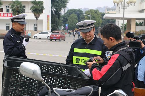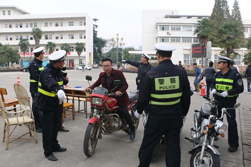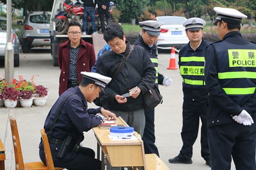 3日下午13:30,6名交通警察在校门设立安全检查点,开始查验过往两轮机动车,同时,对进出校门的学生发放交通安全知识宣传单,活动于14:30顺利结束。此次活动共收缴各类证照不齐的两轮机动车5辆。