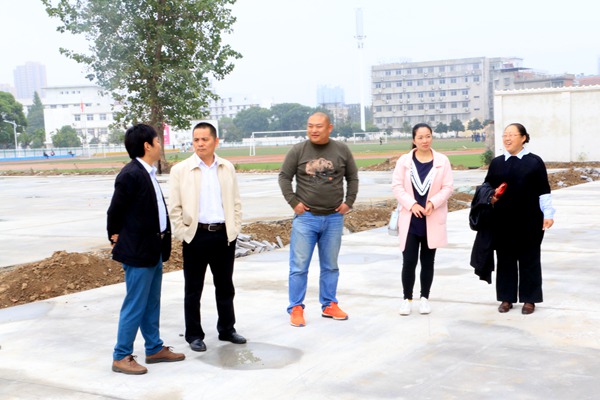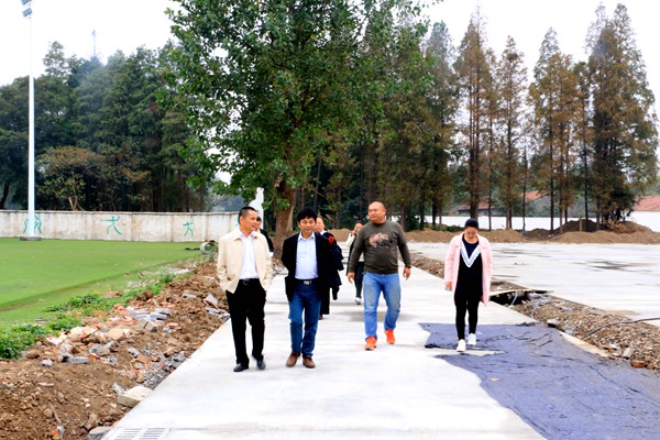 市教体局领导来我校检查足球锦标赛开幕式筹备工作
