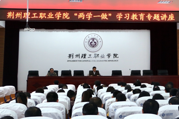 为深入开展"学党章党规、学系列讲话,做合格党员"学习教育,提升党员干部党性修养,25日下午,我校在学术报告厅举行"两学一做"学习教育专题讲座。党委书记、校长别业舫,党委副书记黄永平,纪委书记黄勇,副校长田远芬出席会议,全校教职工参加会议。