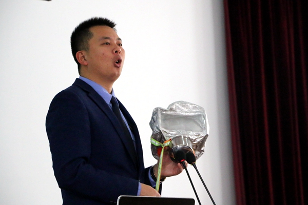 姜勇军结合各地与学校学生相关的火灾案例,用"血的教训"警示师生高度重视消防安全,不断增强消防安全意识,并就消防日常检查、消防火灾的应急和预防、疏散逃生的基本常识、消防设备如何使用等问题进行了深入浅出的讲解。