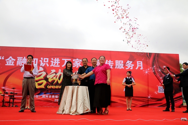 市金融办科长章小林、市人行副行长朱良碧、综合办主任王新斌、市银监局副局长裴大春、荆州农商银行副行长朱德富以及我校副校长田远芬出席启动仪式。仪式由垄上行著名主持人策巴子主持。