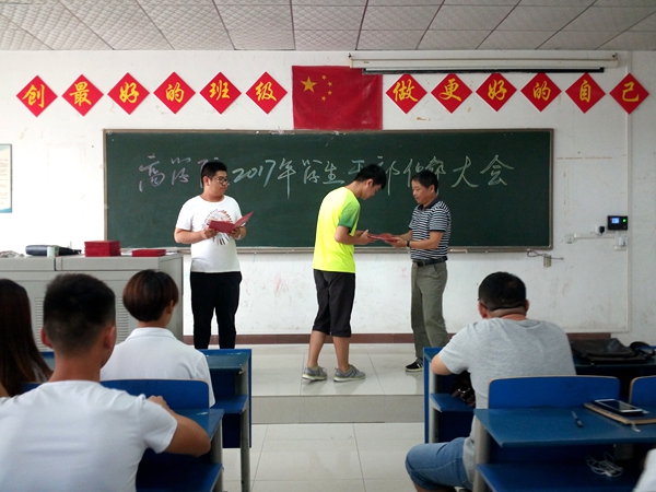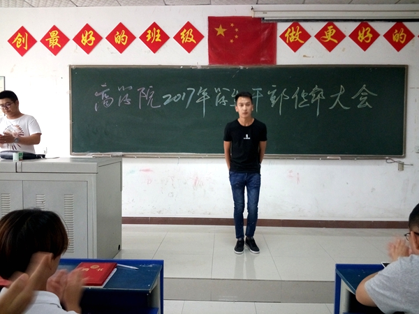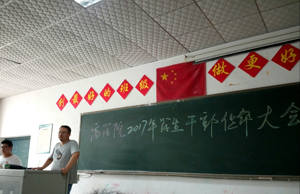 2017年9月18日12:00,商学院学生干部聘任大会在科教楼106如期举行。出席本次大会的老师有:商学院党支部书记何先华、商学院院长向辉、副书记詹庆娟、副院长胡青华,以及负责学生工作的王路鸣老师。