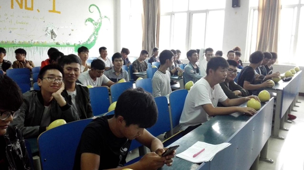 今年的国庆节和中秋节在一起,细心的辅导员为大家发放了节日慰问物资,虽然只是一个小小月饼和一个柚子,却包涵了老师对学生们的关爱之情。