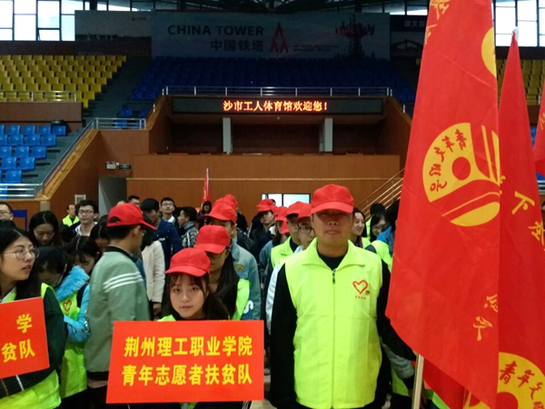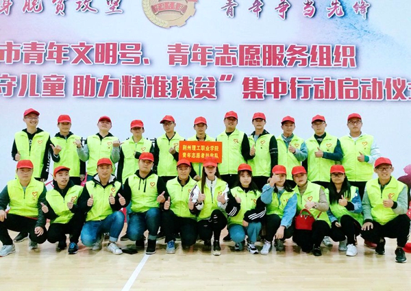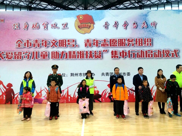 为进一步贯彻落实市委市政府精准扶贫的工作要求,进一步凝聚社会力量,用实际行动助力荆州市精准扶贫、精准脱贫工作。10月17日,我校团委组织青年志愿者服务队积极参与了荆州市扶贫办、共青团荆州市委联合主办的 "关爱留守儿童 助力精准扶贫"集中行动启动仪式"。