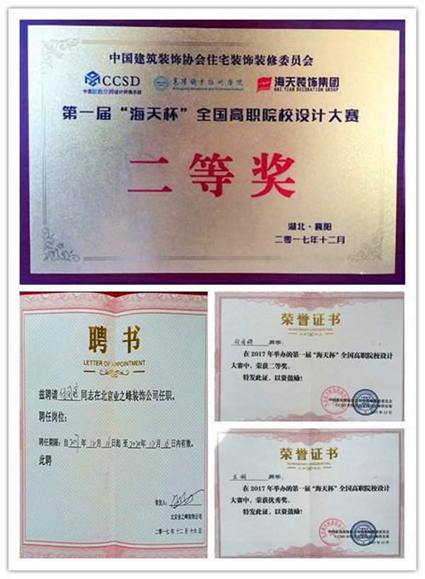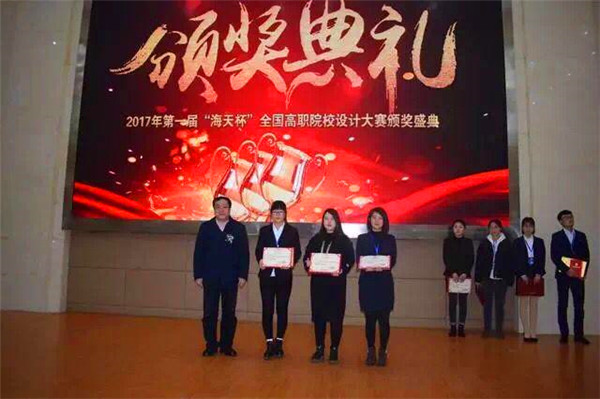 2017年12月15日,第一届"海天杯"全国职业院校设计大赛在襄阳职业技术学院图书馆三号会议室拉开帷幕。来自全国16所高职院校的37名优秀学生代表参加本次设计大赛。大赛的分三部分进行,分别是:现场手绘表现、设计方案讲解、设计理论全面测评。我院海天装饰工程系的优秀学生代表付国婷、卫朋在考场表现沉着镇静,讲解设计方案大胆自信,优异的表现,感染全场评委老师!其中付国婷同学以优异的成绩荣获第一届"海天杯"全国职业院校设计大赛二等奖!卫朋同学荣获第一届"海天杯"全国职业院校设计大赛优秀奖!