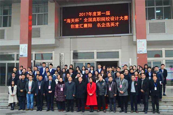 2017年12月14日下午14:00,由中国建筑装饰协会装饰装修委员会、CCSD中国营造空间设计师俱乐部、北京海天装饰集团、湖北海天时代教育投资有限公司、襄阳职业技术学院等联合主办的第一届"海天杯"全国职业院校设计大赛在襄阳职业技术学院图书馆二号报告厅隆重开幕。北京海天装饰集团副总裁余总、中国建筑装饰协会秘书长张仁先生、资深室内建筑师范箐春先生、襄阳职院李菲校长、荆州理工职业学院田远芬副校长、荆州理工职业学院校企合作办主任郭建农、荆州理工职业学院人文与艺术学院院长喻方琪、荆州理工职业学院美术教研室主任高旺、荆州理工职业学院海天装饰工程系主任李虹等出席本次开幕式。