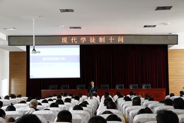 10月11日下午,"现代学徒制十问"专题报告于我校学术报告厅隆重召开,我校特邀嘉宾董家彪教授作报告。校党委书记、校长别业舫,副校长田远芬,全体教师和学生代表参加报告。