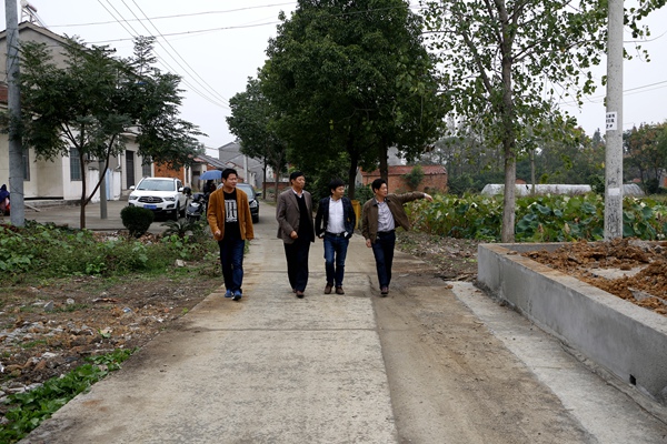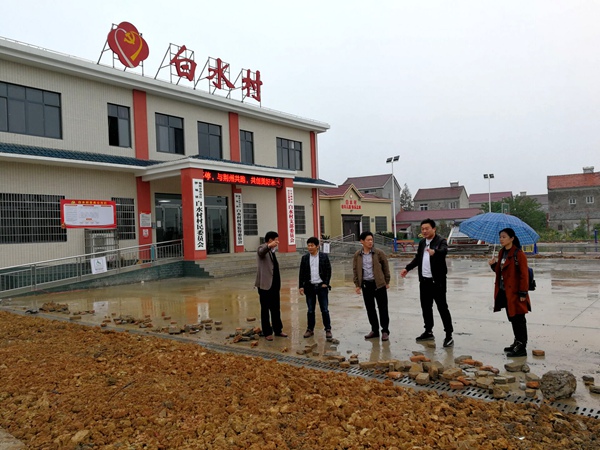座谈会后,别书记一行冒雨查看了村委会广场和主干道的施工,以及"创文"工作情况,同时给予了肯定。