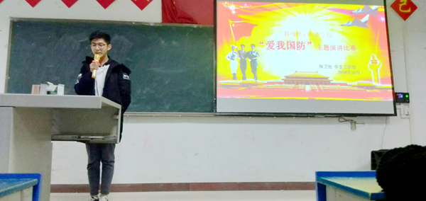 为了激发大学生赓续红色血脉、热爱人民军队、矢志强国强军的政治热情,进一步营造校园国防教育氛围,在我校形成关心国防、热爱国防、建设国防、保护国防的良好氛围,由学工处和保卫处主办的"爱我国防"主题演讲比赛,11月6日下午2点半,在科教楼106成功举办。21名参赛选手声情并茂地阐述了自己对国防的理解和热爱。