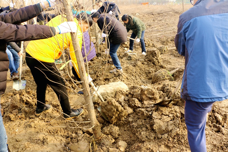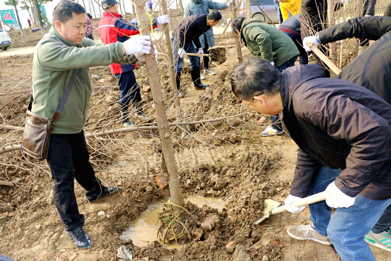 植树活动现场气氛热烈。大家热情高涨、三五成群、分组劳动、配合默契,纷纷挥锹铲土挖坑、扶苗培土、浇水平土,热情满怀,干劲十足,道道工序规范认真,整个劳动场面繁忙而有序。经过一番热火朝天的劳动,一棵棵新栽种的树木拔地而起、傲然挺立,为美丽的荆州大地再添盎然春意。