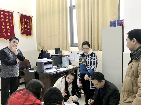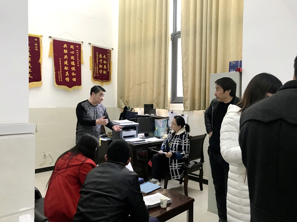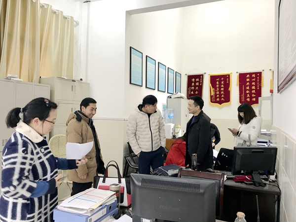 检查组在相关部门领导的陪同下深入每一个场所,实地查看了校园,详细了解我校的资助、教学过程管理、食堂食品卫生、安全工作和学生收费等有关情况并查看工作台账和记录,并听取了我校中专部刘主任的开学汇报。