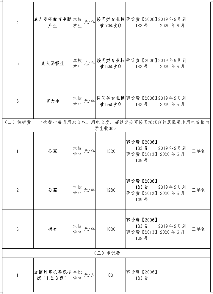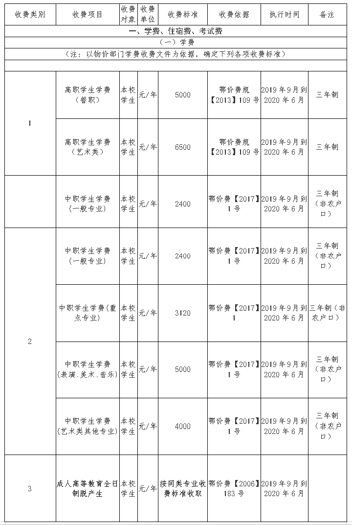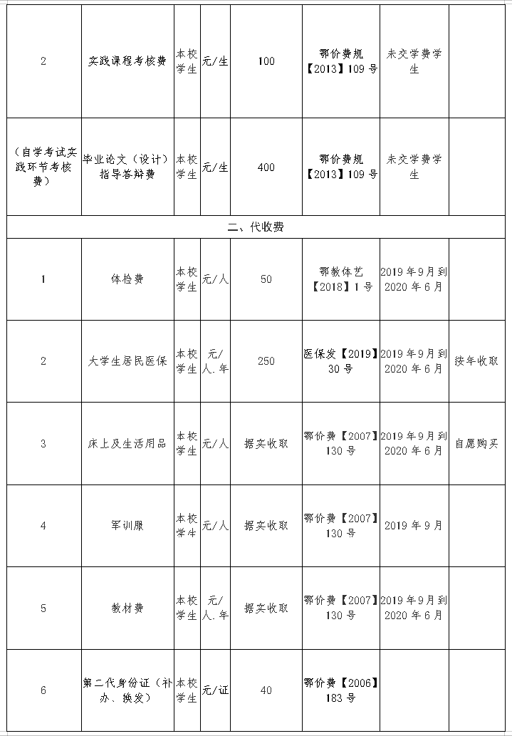 按照省物价局 省教育厅《关于取消收费许可证制度加强高校收费管理有关问题的通知》(鄂价费【2015】116号)要求,现将我校"2019年收费目录清单"公示如下: