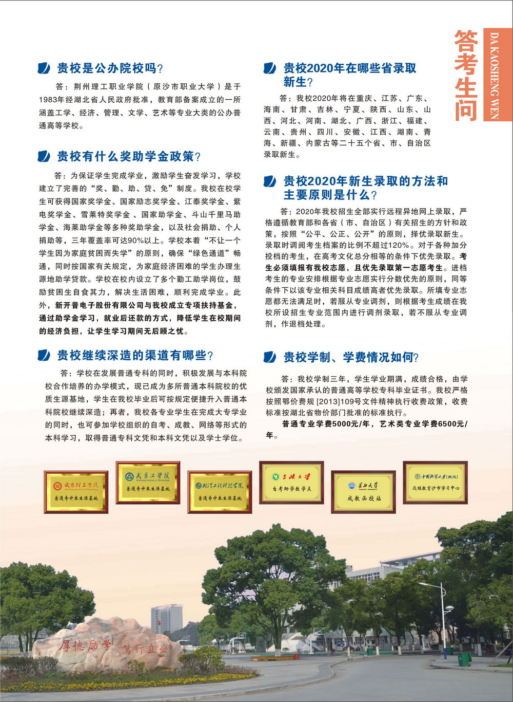 荆州理工职业学院2020年大专招生简章