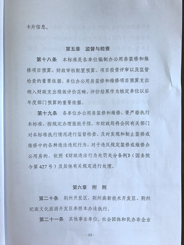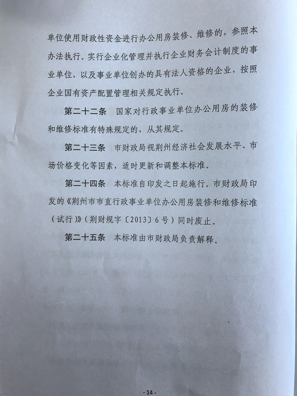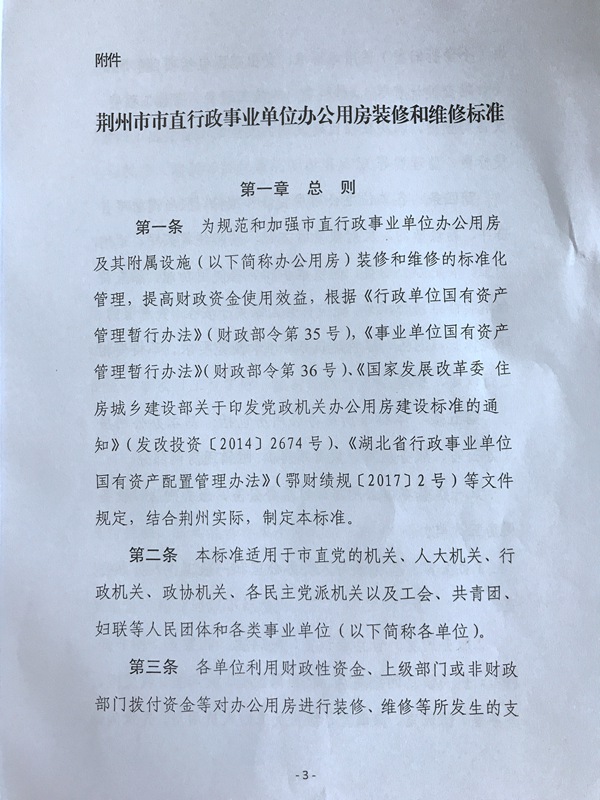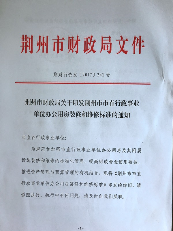 荆州市财政局关于印发荆州市市直行政事业单位办公用房装修和维修标准的通知