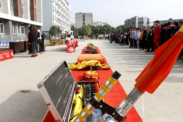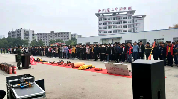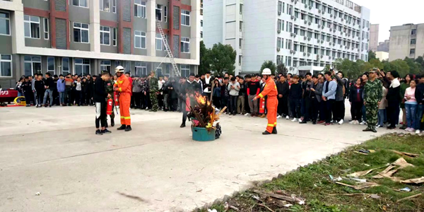 为了增强全体师生的安全意识,提高师生的自救、自护能力。在消防安全月,我校联合沙市区人民政府及沙市区消防大队于2018年11月9日下午开展了以"全面消防,防治火灾"为主题的沙市区2018年"119"消防宣传月活动启动暨荆州理工职业学院2018年应急疏散及灭火演练活动。沙市区人民政府副区长袁来军,学校党委书记、校长别业舫现场观看了演练,工会主席秦燕铭担任本次消防演练指挥部总指挥。全校学生、辅导员及各院部相关负责人、宿管员、食堂操作人员等1500余人参加了本次演练活动。