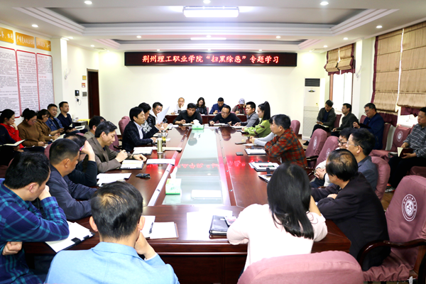 会上,校综治办主任任重传达了我校关于印发《荆州理工职业学院2019年扫黑除恶专项斗争工作要点》的通知,以及2019年中央扫黑除恶督导组对市直单位开展扫黑除恶"回头看"专项督查的通知,并将我校2018年以来扫黑除恶工作情况进行了回顾,他提出各学院、各部门要以抓好中央督导组反馈问题整改和迎接中央督导"回头看"为契机,严格整改校园安全漏洞,建立健全源头预防、预测预警、专项治理机制等各项安全制度,完善改进方法手段,形成扫黑除恶专项斗争常态化、制度化,坚决防范黑恶势力违法犯罪对校园的蔓延渗透和对广大师生的侵害,推动我校扫黑除恶专项斗争工作向纵深开展,实现新突破,取得新成效。