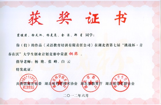 湖北省第七届"挑战杯青春在沃"大学生创业计划竞赛于今年3月启动,旨在进一步深化高等学校就业创业教育,培养和提升广大青年学生的创造精神、创新意识和创业能力。参加竞赛的作品分为已创业(甲类)和未创业(乙类),分为农林、畜牧、食品及相关产业,生物医药,化工技术、环境科学,电子信息,材料,机械能源,服务咨询等七组。实行分类、分组申报。