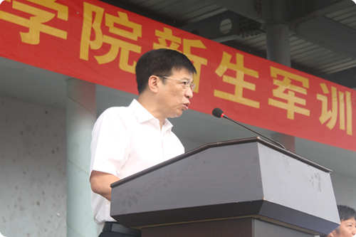 学院党委书记王海棠在誓师大会上发表了热情洋溢的讲话。他代表全院师生员工向来自全国各地的2012级新生表示热烈的欢迎,对承训部队教官表示感谢!