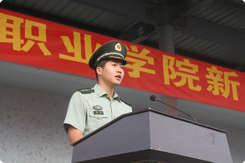 承训部队教官代表发言时表示,要从我做起,以良好的军人形象带领大家,认真履行一名教官应尽的职责,发扬不怕苦、不怕累的精神,以身作则,给同学们做好榜样。以兄长之情关心爱护大家,尽力给大家营造良好的训练氛围,在军训过程中,认真备课,因材施教,严格训练,严格要求,热心解决同学们训练中的难题,努力提高同学们的军事技能。