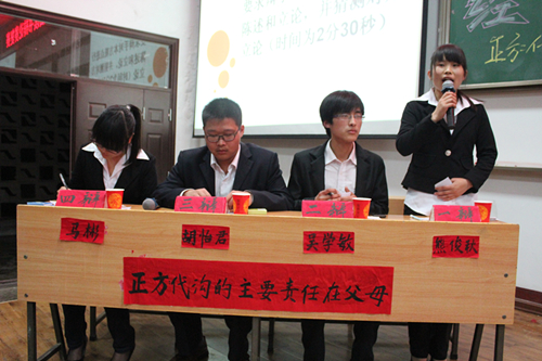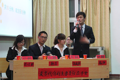 在众多精彩纷呈的比赛中给人印象最深刻的是经管系二队对信息系一队的那场比赛,这场比赛于4月26号下午3:00-5:00开始,这场比赛让同学们见识到了辩手们的口才的犀利和思维的敏捷,见识到了当代大学生的青春风采。