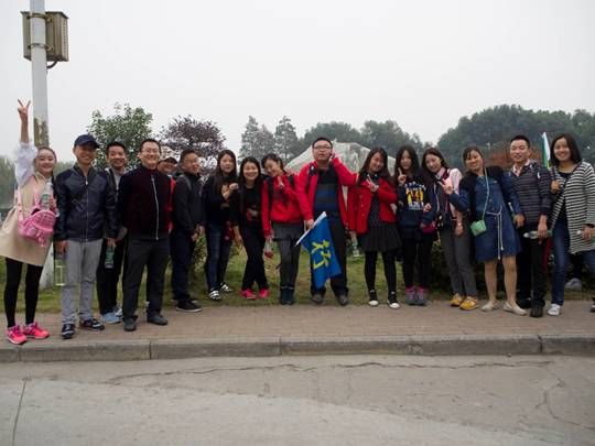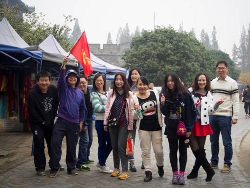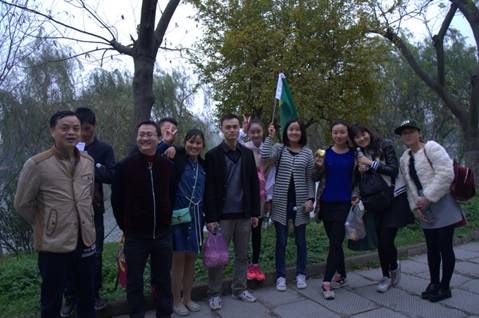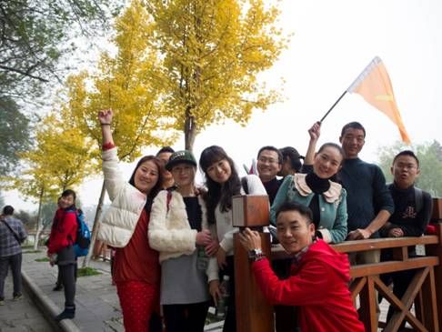 树上的枫叶,都是由稚气的绿色叶片,经历长时间的风吹雨打,才成就了今天成熟的模样,在这样具有象征意义的美丽景致下,大家的笑脸在这一刻定格。