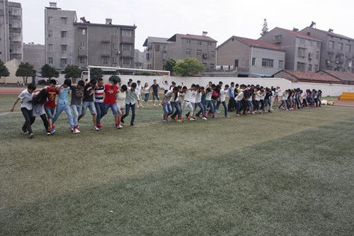 此次趣味运动会主要包括十人九足、心心相印、人椅、信任背摔和拔河五个项目。在活动过程中同学们都摩拳擦掌,亟待一展雄风。整个活动现场气氛异常活跃,尤其是在拔河比赛中,不仅是双方队员力量的较量,场边助威的拉拉队员们也不甘示弱,加油声此起彼伏,广阔的足球场上空回荡着的都是同学们的呐喊声。