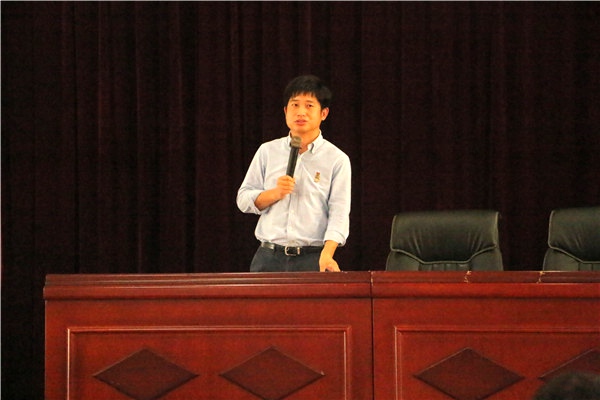会议的第一项是周翔博士为同学们带来《放眼国际志存高远,启航职涯共赴前程》的讲话,周博士为同学们展示了当今中国智能制造的现状,大到大型工业设备,小到精密零部件,智能制造无一不在的现状,启航计划活动的开展是为同学们打开走出国门,体验发达国家先进智能制造生产技术的机会。讲话赢得了同学们热烈的掌声。