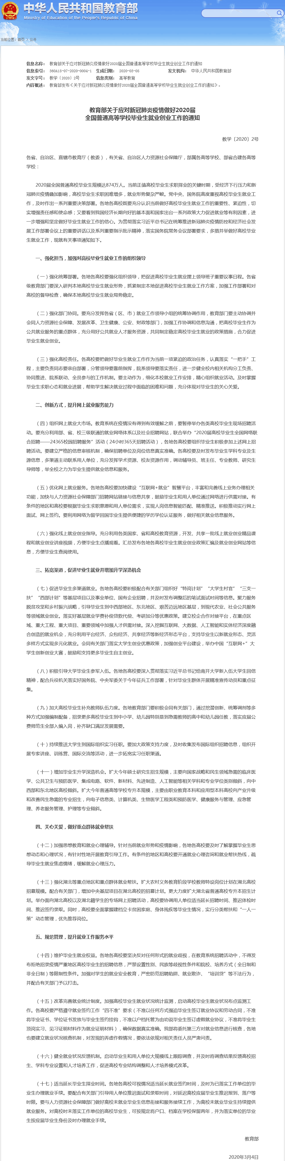 原文链接:www.moe.gov.cn/srcsite/A15/s3265/202003/t20200306_428194.html