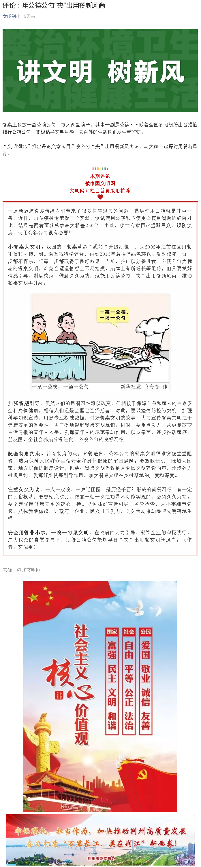 【文明荆州】评论:用公筷公勺“夹”出用餐新风尚
