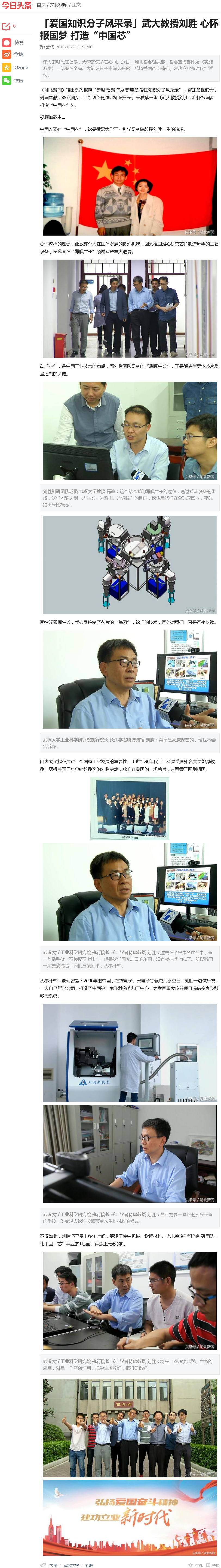 【今日头条】“弘扬爱国奋斗精神、建功立业新时代”系列报道(十六)——10月26日,《湖北新闻》:“新时代新作为新篇章·爱国知识分子风采录”系列报道第3集《武大教授刘胜:心怀报国梦打造“中国芯”》