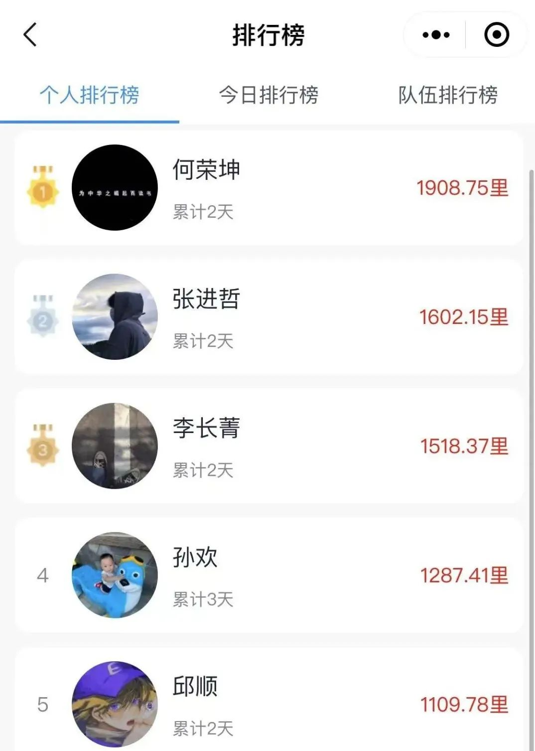 个人排行榜