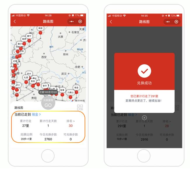 活动启动后,不仅该学院的学生,教职工群众也积极参与,将学习中、工作中、生活中的运动步数,兑换至小程序长征路线。同时系统会显示对应长征点的历史知识。