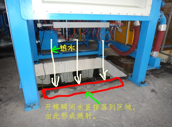 通过在泡沫公司下车间顶岗操作,实地工作体验仔细观察,开模水温确实是过高且能形成烫伤。伤人原因主要是,一、模具打开时,因开水较多,且开水落在水泥地面上,,溅射面积较广,正好大部分溅到分拣员工身上,形成烫伤。二、开模时没有提示,分拣员工不知道,容易在分拣过程中,突然开模,被开水烫伤。