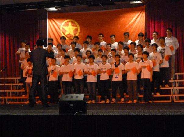 2:40分,艺术团阿娜多姿的开场舞结束后,学工处处长谢先春老师为本次红歌会致开幕辞。机械工程系本次共有3支合唱队参赛,第一支参赛的是我系11机械设计与制造班,他们合唱的《中国人》和《精忠报国》掀起了纪念建团90周年的热潮,排在第八位参赛的是10机电一体化班,最后是我系11机电一体化班同学合唱的《黄河大合唱》和《中国军魂》,他们在歌声中讲述共青团的90年光辉岁月,悠远而亲切、舒缓而热烈、沉稳而澎湃,演唱掀起了比赛的高潮,整个现场为之沸腾。经过激烈的比赛,最后我系11机电班获得了本次比赛特等奖。