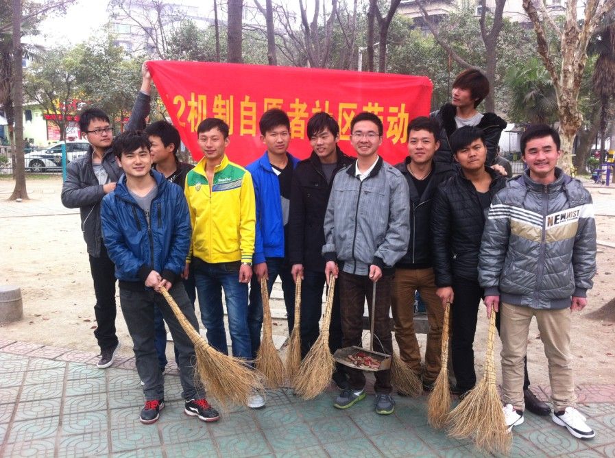 3月15号上午10点整,12机制班的"雷锋"们,带着工具,打扫了小区各个走道和路口及休闲地方。劳动过程中,同学们的积极性很高,热情高涨,每个细节都做得很认真、仔细,社区的大爷大妈也对我们的活动报以微笑,表示鼓励,很快同学们就把社区打扫的干干净净的勒,整理好劳动工具,开开心心的离开了。