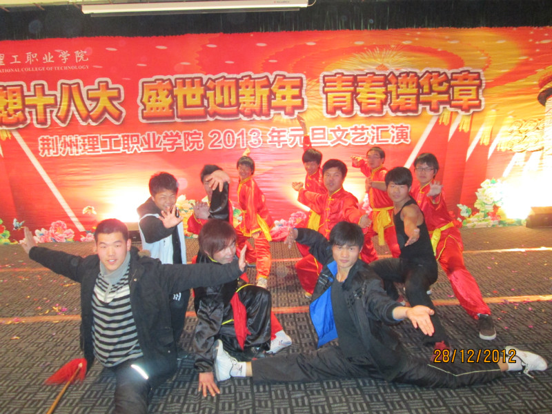 2012数九寒天人心暖,五星闪耀情意浓。在这个辞旧迎新的夜晚,我们迎来了2013年,迎来了荆州理工的又一份元旦晚会,12月28日,学生活动中心灯火辉煌,歌声飞扬,我院2013年"畅想十八大盛世迎新年青春谱华章"元旦文艺汇演在这里隆重举行。学院党委书记王海棠、院长童应学、副书记黄永平、副院长龚恒,王克军、纪委书记黄勇和各系、各部门负责人与全院师生代表共同观看了演出。