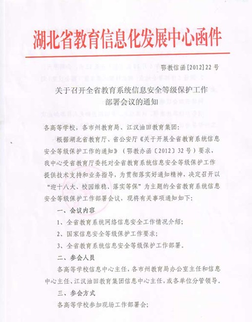 关于召开全省教育系统信息安全等级保护工作部署会议的通知
