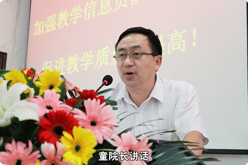 童应学院长在会上发表了热情洋溢的讲话,他说,教学信息员队伍在学生工作处和教务处的双重领导和指导下,积极工作,付出了大量的心血和汗水,特别是能够真实、准确、全面地反映教学问题,促进了各种问题的及时解决,教学信息员对于促进学院教学质量的提高起到了不可替代的作用。他强调,通过开展教学信息员有关工作,有利于调动学生参与教学管理、进行自我服务的积极性,有利于改进教育教学工作,有利于建立可靠的监控及评价体系,有利于加强学生管理部门、教学管理部门、教师、学生之间的沟通与联系,搭建积极有效的沟通桥梁。他指出,要成为一名合格的教学信息员,必须具备四个条件:一是要有很强的责任心,有参与教育教学工作协助管理的积极性;二是要学习态度端正,学习成绩优良;三是需要有较强的组织与沟通协调能力;四是要有一定的观察、思考、分析问题的能力,并具备一定的语言文字表达能力,能将发现的问题进行总结和分析。他希望教学信息员从以下四个方面认真履行自己的职责:一是积极收集汇总学生们对教师教学态度、教学水平等方面的意见和建议,并及时向学院反映;二要能够对教学内容、教学方法、教学手段形成客观的教学评价,并写出相应的分析报告;三要积极参与学生管理、教学管理,对学院教学管理制度和人才培养方案等提出自己的想法和建议;四要积极反映同学们在学习过程中存在的问题,为加强学风建设作出贡献。