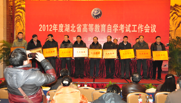 会上,黄石市教育考试院、武汉商业服务学院、武汉大学HOPE护理学院分别作为市州教育考试机构、助学单位、行业协会的代表作了交流发言。省教育考试院自考办、命题办负责人分别回顾总结了2012年我省自学考试及自学考试命题的工作情况,部署安排了2013年重点工作。会议还表彰了2012年度全省高等教育自学考试先进集体和先进工作者,并进行了颁奖。