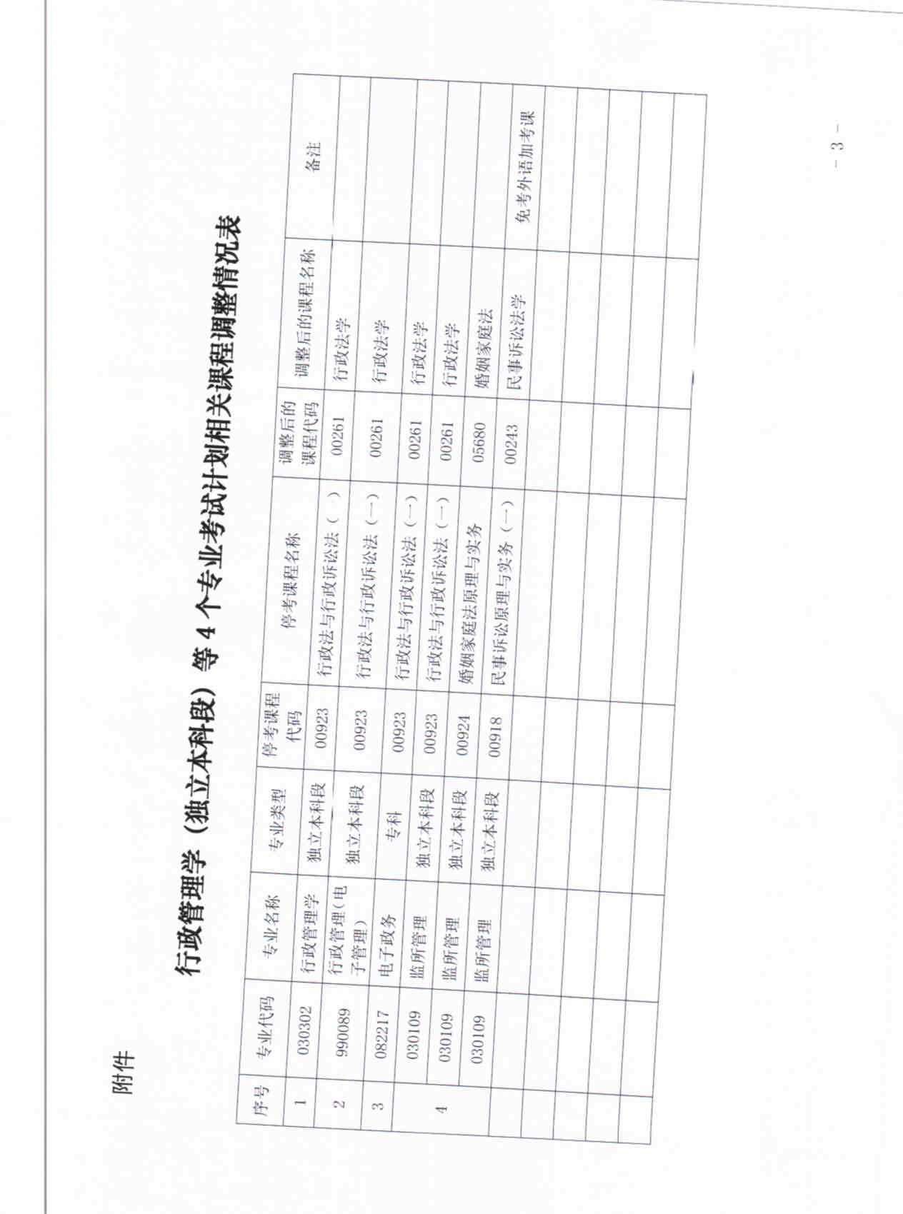 关于调整行政管理学等4个专业考试计划中相关课程的通知